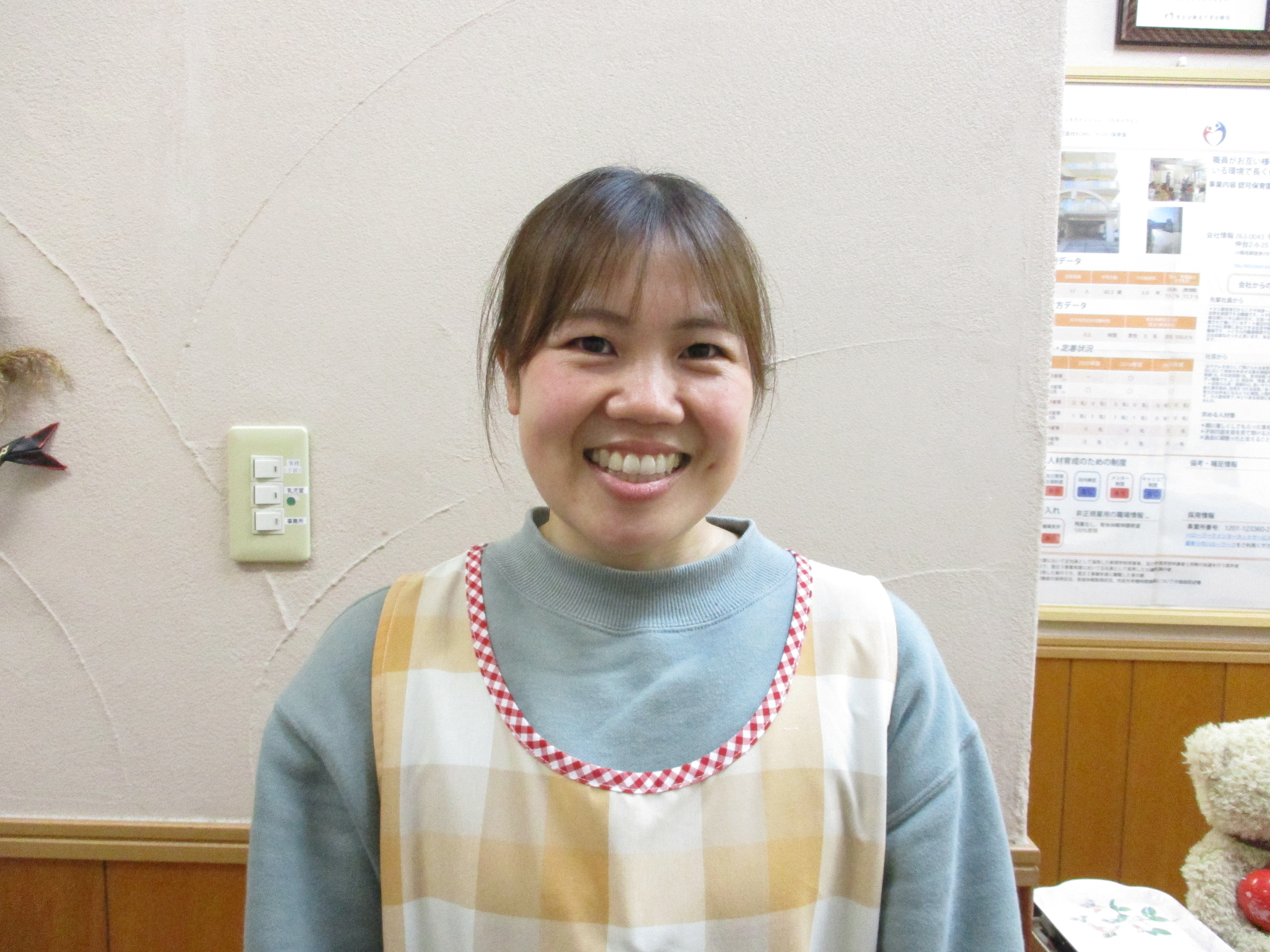 | ★さとみ先生(保育アシスタント・保育士・幼稚園教諭資格取得) 午前中の活動を中心に子ども達のお世話をさせて頂いております。久しぶりに小さい子ども達に囲まれて可愛くて仕方ありません。これからも一人ひとりを大切に成長を見守っていけたらと思います。 |